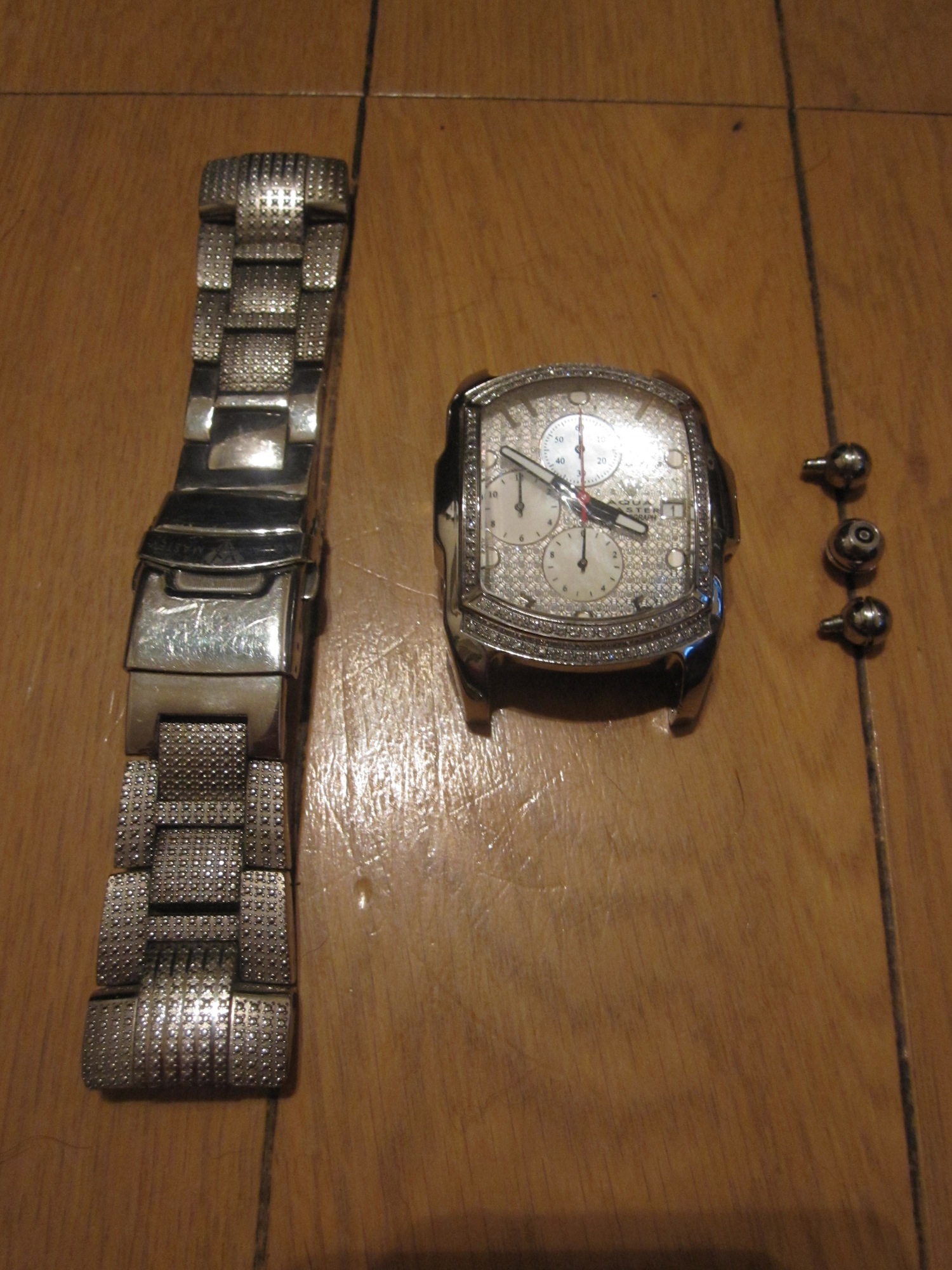 画像から、リューズだけでなく、クロノのプッシュボタンも取れてしまっております。