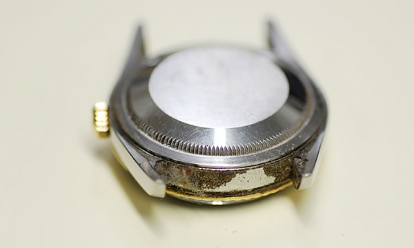 ROLEX専用のオープナーで裏蓋を開けます。