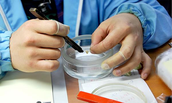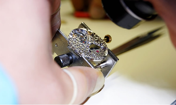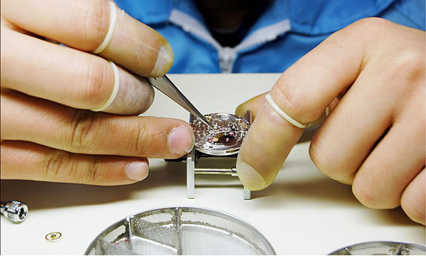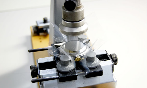 キズ見(ルーペ)で細部を確認しながら、慎重に組み上げていきます。