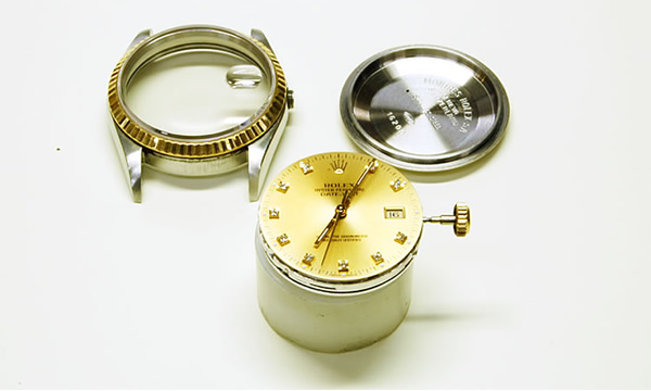 機械式(自動巻ムーブメント)時計の、ROLEXデイトジャストのオーバーホールをご紹介します。