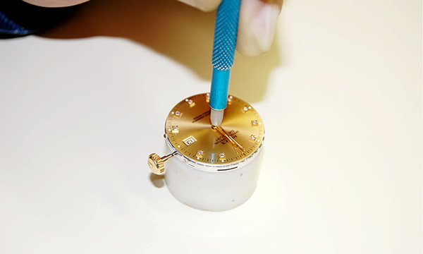文字盤を付けたのち、針を取り付けます。